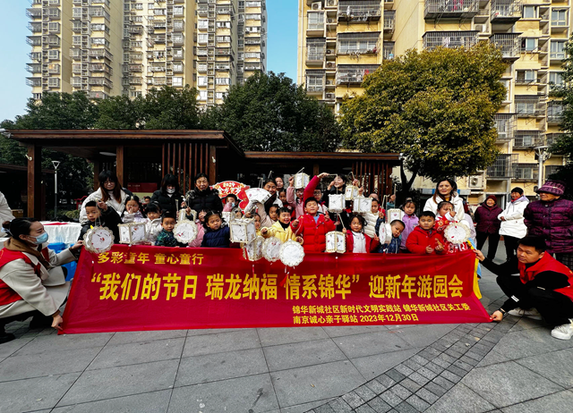 新年即将到来,为增强社区居民的凝聚力和归属感,促进社区文化的传承和发展,增强亲子间的交流和互动,营造浓厚的节日气氛,2023年12月30日,由南京雨花锦华新城社区新时代实践站、关工委主办,南京诚心亲子驿站承办的“多彩童年”—“我们的节日 瑞龙纳福 情系锦华”迎新年游园会在锦华一期广场举行。