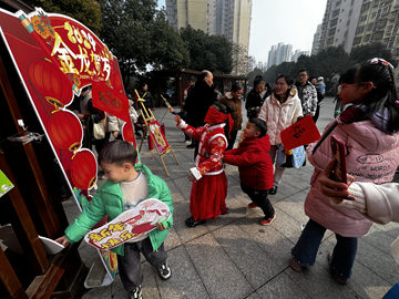 游园会现场设置富含年味的猜灯谜、蒙眼摸福、投壶等关卡,来自锦华社区的29组家庭共同参与了活动,孩子们兴奋的犹如翩翩起舞的蝴蝶满场进行闯关游戏。