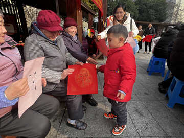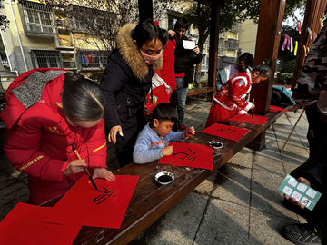 来到写福字环节,书法老师给孩子们做了展示,孩子们在老师的指导下一笔一划认真的写起了福字,将亲手书写的作品赠送给了广场上的老人们并送上甜甜的祝福:“爷爷奶奶们,祝你们新年快乐”,老人们拿着福字乐得合不拢嘴!
