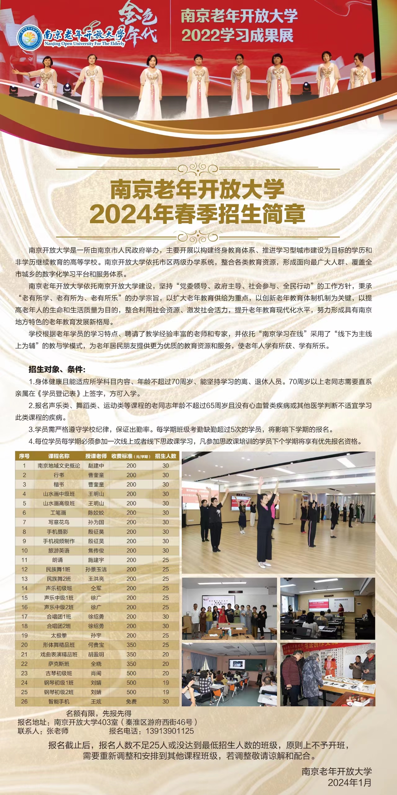南京老年开放大学2024年春季招生简章