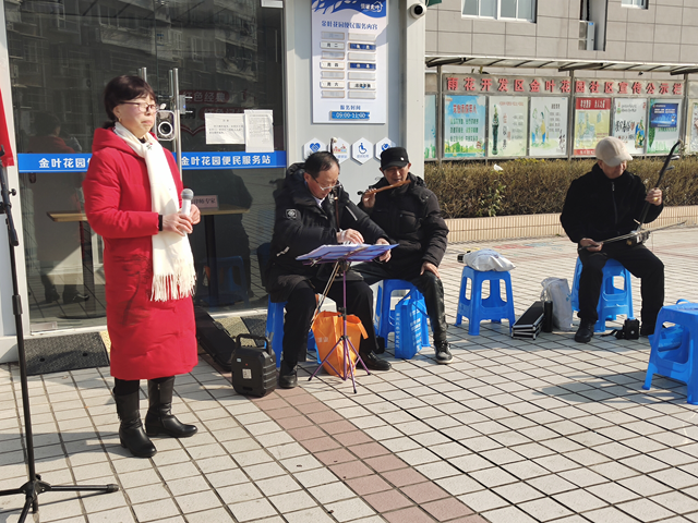 “找点空闲,找点时间。领着孩子,常回家看看。带上笑容,带上祝愿。陪同爱人,常回家看看。”伴随着一曲《常回家看看》歌声传来,金叶花园小区的市民广场传来一阵阵喝彩声。原来是教师志愿者带领孩子们正在为社区老人演唱春节经典歌曲。冬日主题文化活动开始了。