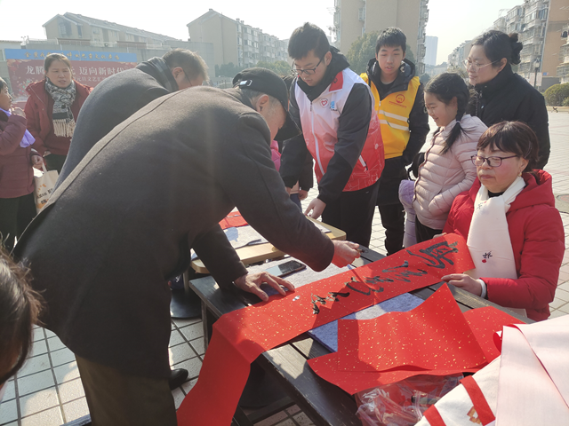同学们,你们知道春节到了,家家户户都要贴春联。今天,我们和父老乡亲一起,写福字,送春联。活动现场气氛热烈,热闹非凡。社区的老人和孩子们围坐在一起,一边品尝社区工作人员准备的瓜果零食,一边唠着家常,尽情享受着这美好的时刻。雨花台区书法家们则是神情专注、热情洋溢地在鲜红的春联纸上挥毫泼墨。一幅幅带着祝福的春联、一张张满含祝愿的“福”字,在书法家们的笔下挥洒而成,散发着清新墨香的春联融入了节日的喜庆和人民的热情。孩子们兴趣盎然,把礼物送到老人们手中。最后,居民们和孩子们一起上台表演,老少同乐,父老乡亲们脸上展现出满满的自豪感和幸福感。