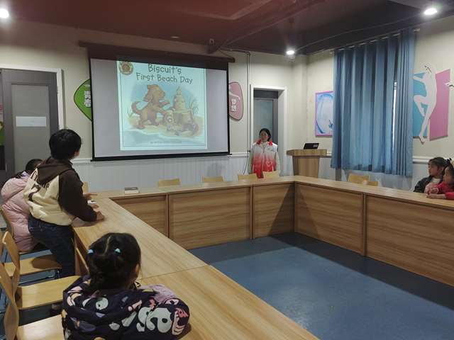 为了更好地帮助孩子们理解和记忆故事内容,志愿者老师采用了角色扮演的方式。孩子们分组扮演不同的角色,包括小狗Biscuit、它的主人以及海滩上遇到的其他动物和人物。他们用简单的英语对话和动作表演,将故事情节生动地展现出来。