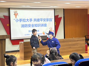 组织辖区幼儿共同观看消防安全教育动画宣教片,邀请开发区应急管理——消防一体化工作站消防巡查员为辖区幼儿开展消防安全知识讲座,以问答的方式向孩子们普及电瓶车不能进楼道、楼道不能堆放杂物、如何拨打119求救等安全常识,带领孩子们参观了社区综合减灾宣教室,最后,小朋友们还为消防员叔叔送上锦旗。
