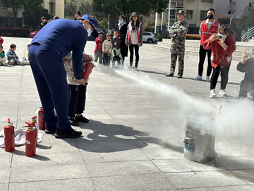 组织消防巡查员、老师、社区网格员、“安全蓝”志愿者带领孩子们身临其境体验、使用灭火器,“零距离”感受学习消防安全知识;各幼儿园以“‘3·25’安全教育日”为契机自发组织幼儿在园内开展消防应急疏散演练。
