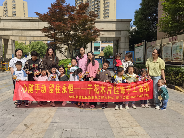 为了丰富广大居民群众的文化生活,展现积极向上、勤于动手的良好精神风貌,锦华新城社区新时代文明实践站联合蒙正公益组织开展“心随手动 留住永恒”——干花木片挂饰手工活动。