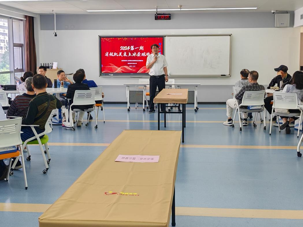 2024年9月24日一场别开生面的桌上冰壶球培训班在南京老年开放大学盛大开幕,标志着这项新兴健身运动在老年群体中迈出了坚实的一步。本次活动由江苏省老年人体育协会省级机关工作委员会与南京老年开放大学联合主办,吸引了来自各省级机关的40余名退休干部积极参与。